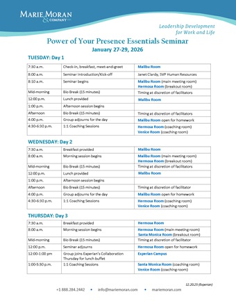 Welcome to the Power of Your Presence Essentials Seminar! We are pleased to be able to provide this exceptional opportunity as part of your continuing leadership development.